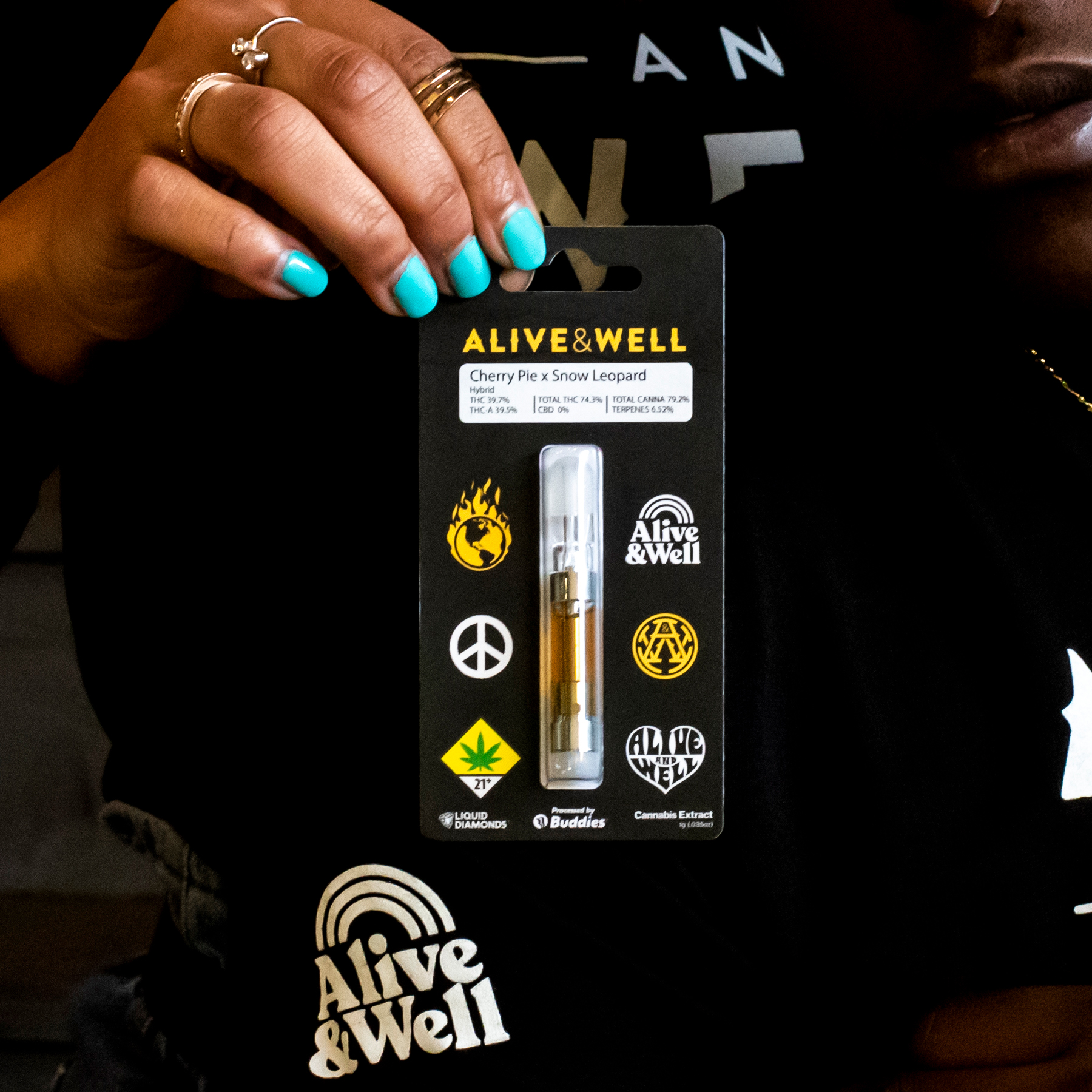 Seattle streetwear icons Alive and Well drop their first cannabis collab with Buddies cartridges at The Reef this Monday, 2.1.21 at 8 am (Seattle & Bremerton). The exclusive launch highlights three distinct vibes – energizing, creative euphoria, and sleepytime. Each cart features liquid diamonds powered by Buddies Brand – 100% full-spectrum live resin with no added distillate or flavoring.