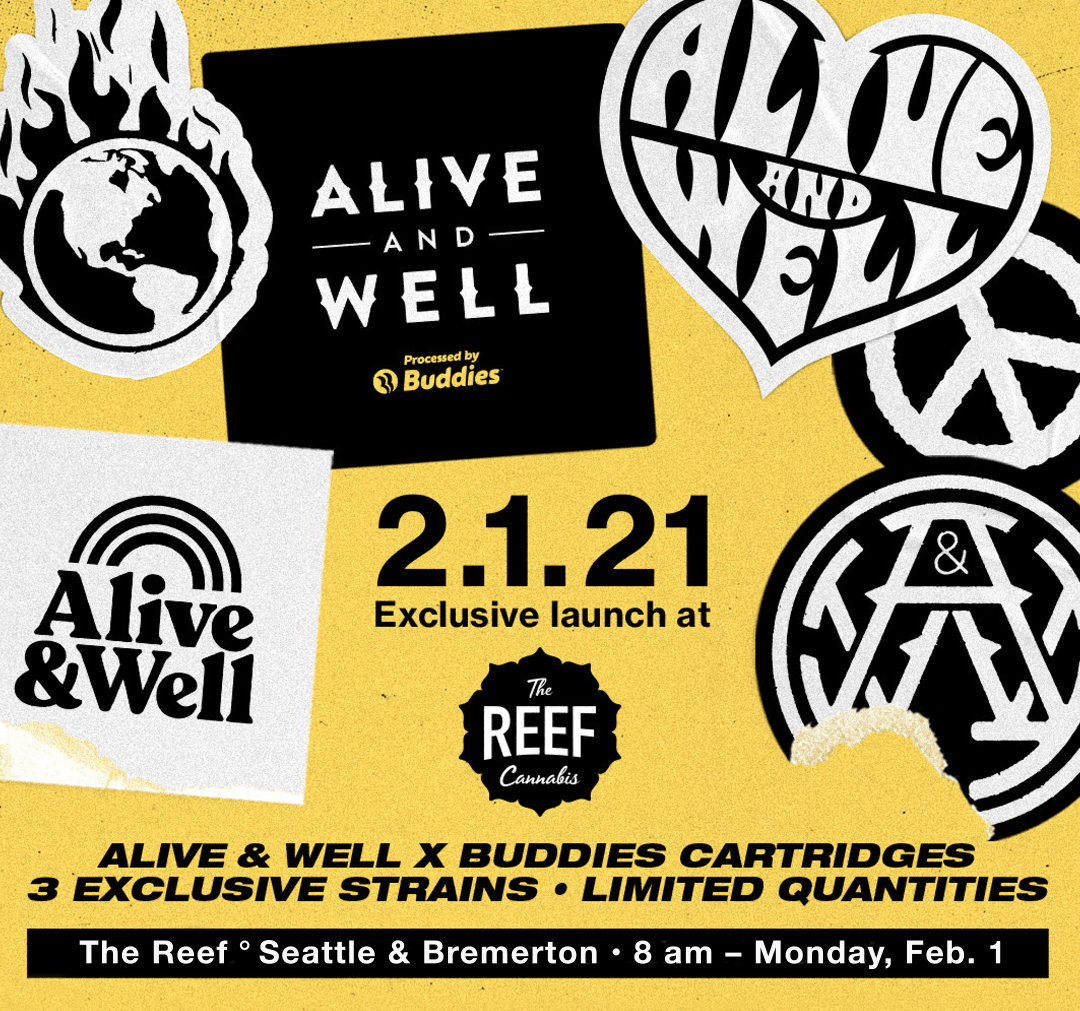 2.1.21 ° A REEF EXCLUSIVE – ALIVE & WELL X BUDDIES CARTRIDGE LAUNCH
