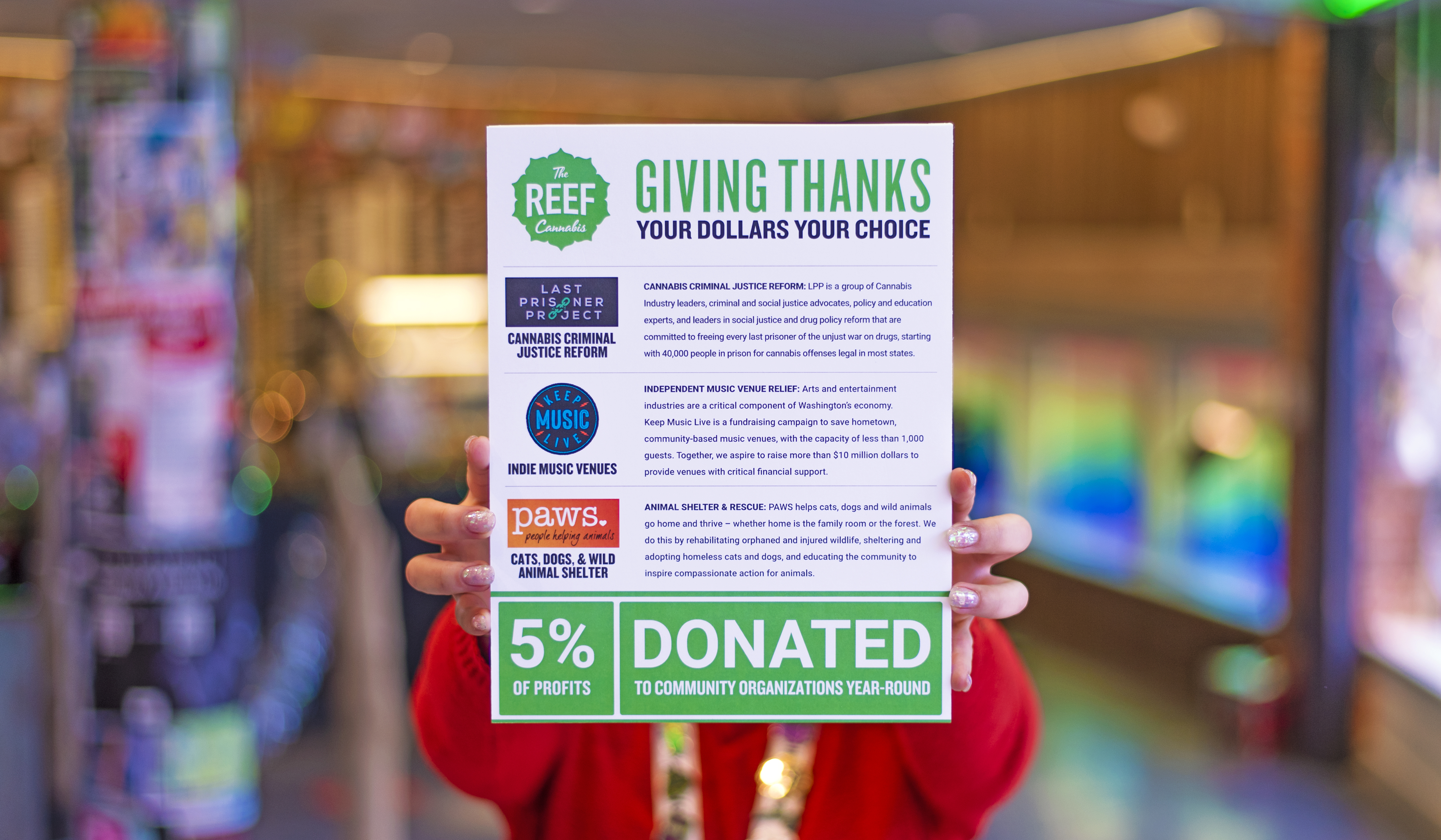 Each quarter we select three non-profit organizations that we believe are benefiting our community and are aligned with The Reef’s company values. At the conclusion of every in-store transaction, our budtenders ask customers to choose which one of the listed organizations they would like the profit from their purchase applied towards. We tally the numbers at the end of the quarter and send each organization a donation. Learn more about next quarter's organizations below & check out past organizations HERE.