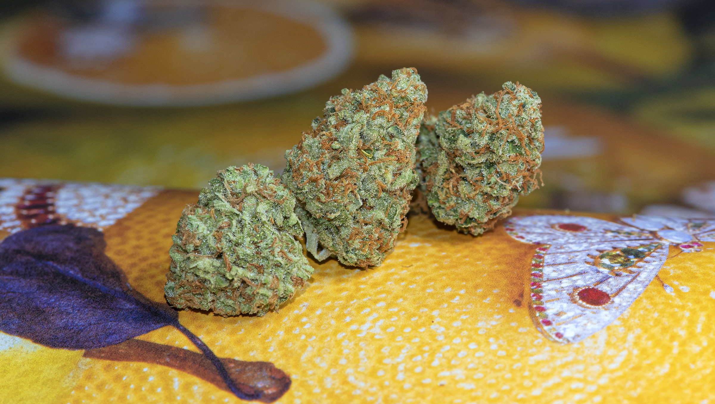 The first thing one notices is the obvious care that has been taken with these buds. There's no corner-cutting or machine trimming here. Each nug is expertly hand-manicured and they are almost unusually consistent in size. A nice, healthy dusting of large trichomes covers the deep green flower. Persimmon orange pistils protrude homogeneously from this herb, further indicating care and proper cultivation of this Limoncello Haze. Bright, herbaceous scents emanate from the flower as soon as the lid is opened, pleasantly foreshadowing the light tastes to come. Breaking up the bud, the consumer will find it sticky and moist. The smoke of Limoncello Haze is smooth, citrusy and robust. Additionally, it had a bit of a cough inducing, chest-swelling quality. Humulene, myrcene, and limonene work collaboratively to make this strain taste exactly like its namesake Limoncello; and it's this more complex lemon note that sets this strain apart from other sour strains.