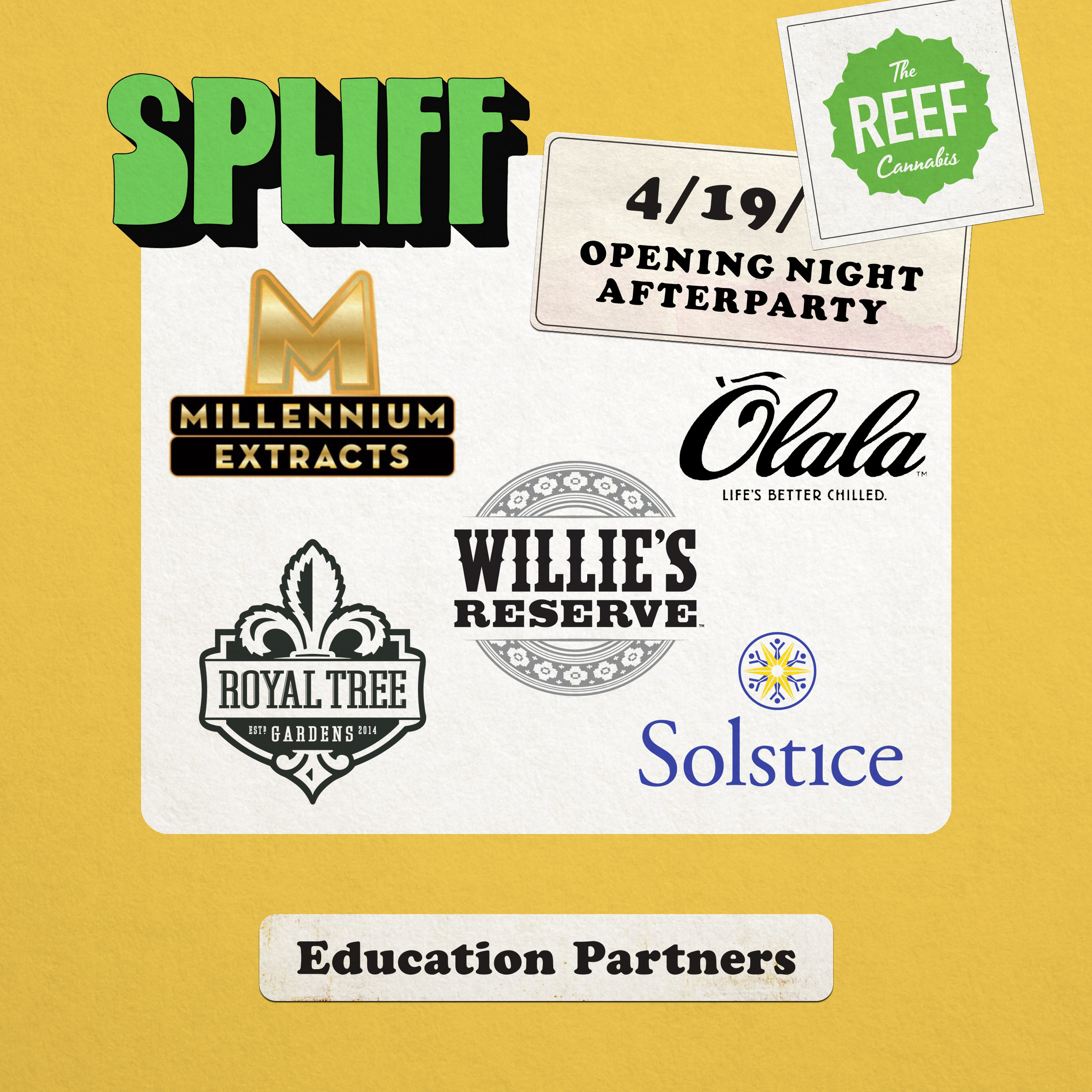 Meet the teams and learn about some incredible brands while at the afterparty. We are so grateful to our education partners – Millennium Extracts, Willie's Reserve, Royal Tree Gardens, Solstice, and Olala – all will be on-site that night to answer your questions.