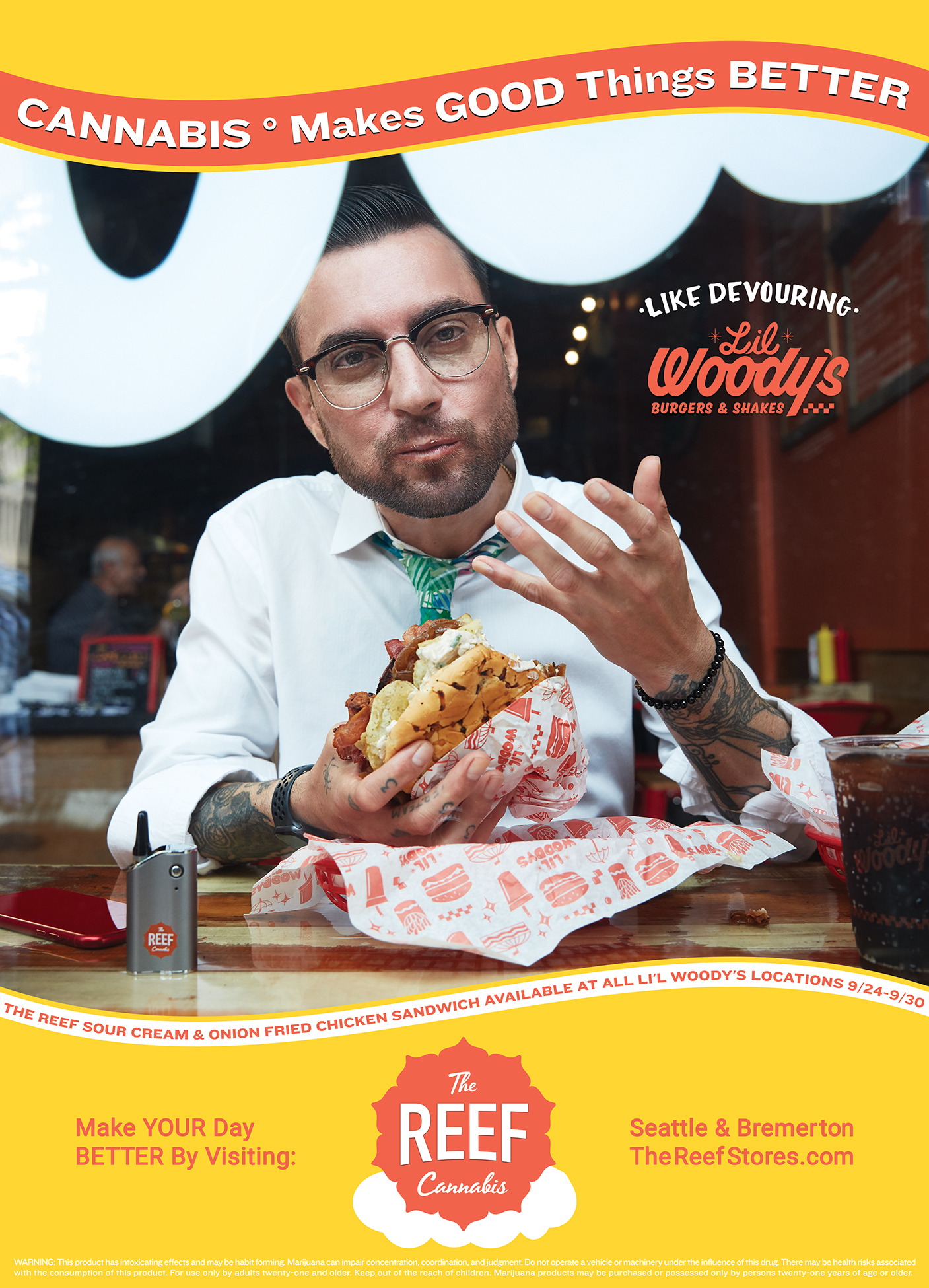 The Reef believes CANNABIS ° Makes GOOD Things BETTER. This week we are stoked to drop a major munchy sandwich collab with Li'l Woody's Burgers & Shakes. The Reef Sour Cream & Onion Fried Chicken Sandwich will be available at all Li'l Woody's locations 9/24-9/30. Check below for the full list of ingredients.